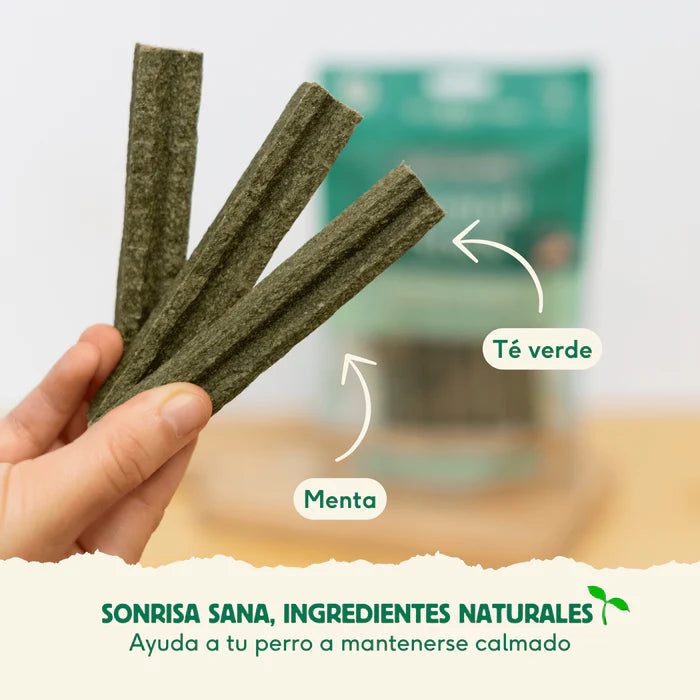 ¿Quieres cuidar la higiene dental de tu perro y, a la vez, darle un snack que le ayude a estar más tranquilo en situaciones puntuales? Los Dental Sticks Calming de Pavo están pensados para una rutina diaria fácil: ayudan a reducir placa y sarro gracias a la masticación, mientras que su combinación con menta y extracto de té verde aporta una sensación de frescor y bienestar.